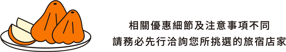 2. 僅限於直接與民宿訂房無法透過網路訂房平台